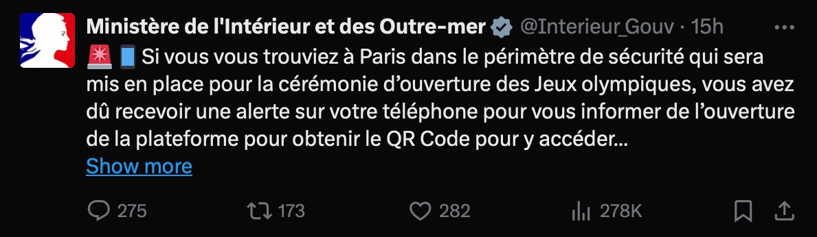 Or, il ne s’agissait cette fois-ci que d’une information pour prévenir de la mise en place du « Pass Jeux », le fameux QR code indispensable pour circuler dans la zone olympique pendant les Jeux cet été.