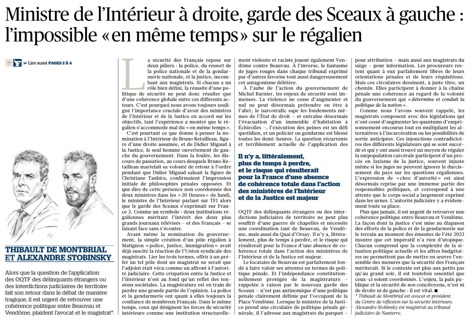 Thibault de Montbrial et Alexandre Stobinsky (magistrat au tribunal judiciaire de Nanterre) publient une tribune dans Le Figaro.